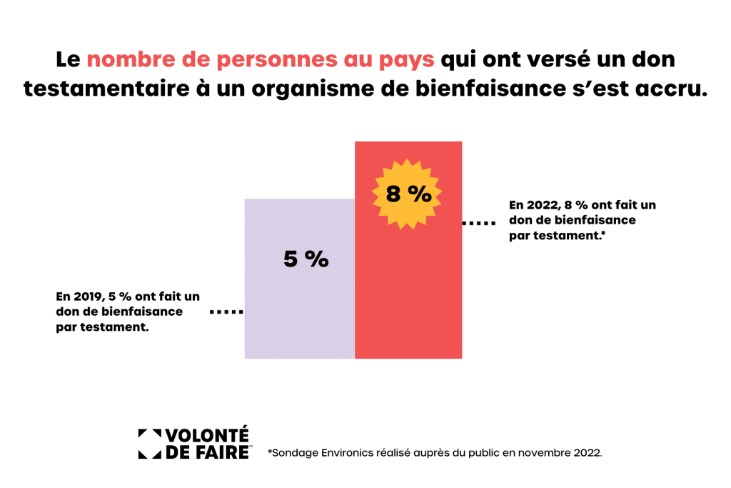 Il y a aussi une raison d’ordre démographique. Le plus grand transfert de richesse de l’histoire au pays est à venir : environ mille milliards de dollars seront légués au cours des 10 prochaines années. Plusieurs donateurs réalisent donc qu’ils ont assez d’argent pour soutenir à la fois leur famille ET leur cause préférée dans leur testament.